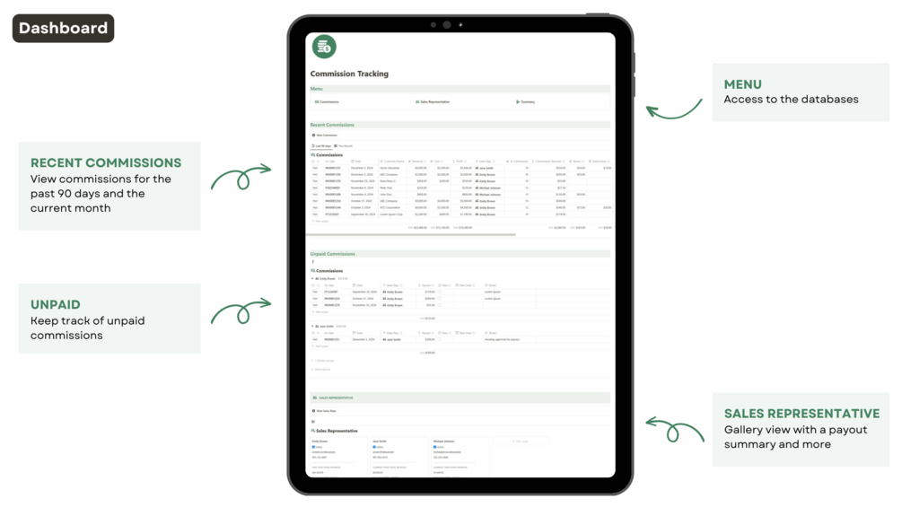 Do you want to simplify the process of tracking your sales reps' commissions and have a clear view of their sales performance? The Notion Commission Tracking template is designed to help you maintain an organized and efficient record of all commission transactions, providing you with a powerful tool to optimize your sales operations.