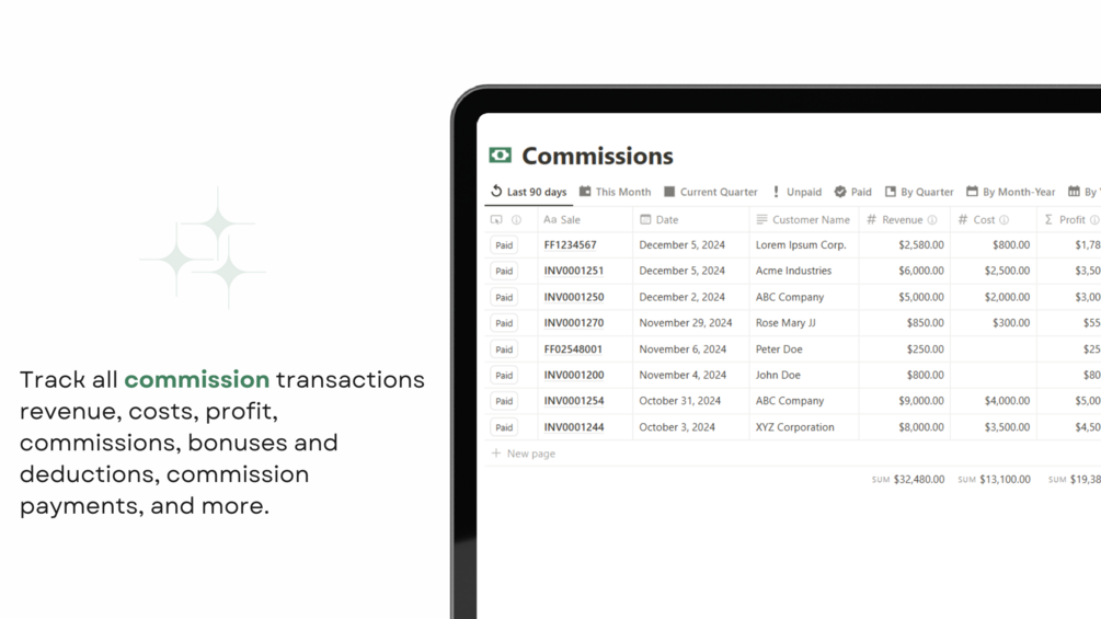 Empower your sales team's success and take your commission management to the next level with the Notion Commission Tracking template. Start streamlining your sales operations today!