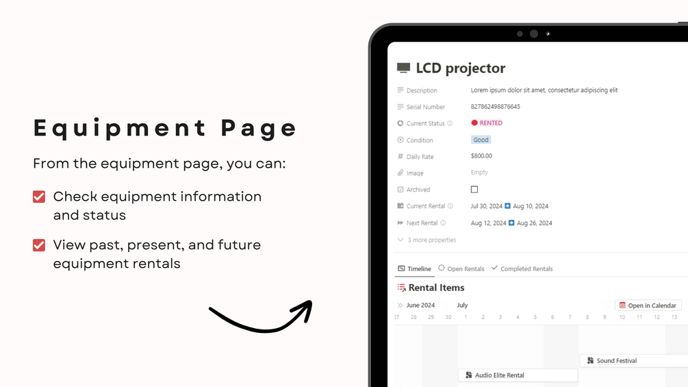This "Equipment Rental Management" Notion template is ideal for: