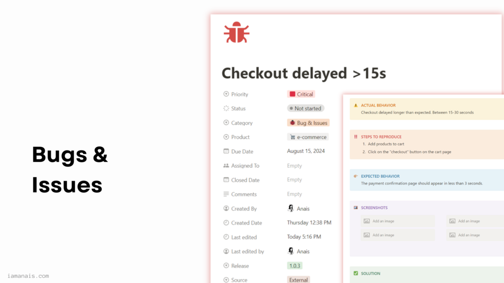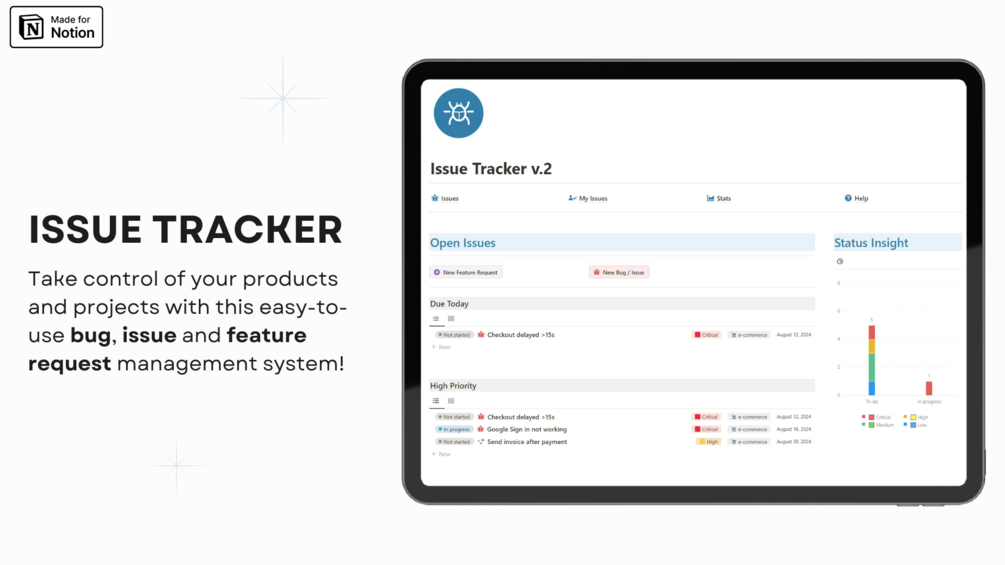 This template allows you β to efficiently organize and track bugs, issues, and feature requests all in one place. With an intuitive and easy-to-use interface, you can visualize the current status of each issue.