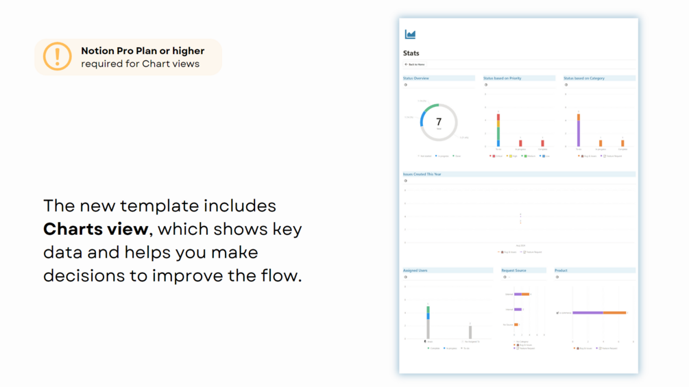 βΉ This new template version includes Charts, which shows key data and helps you make decisions to improve the flow. (Requires Notion Pro Plan or higher)