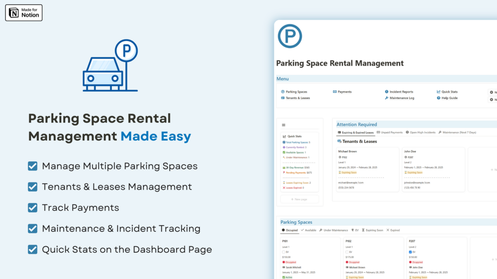 The Ultimate Parking Space Rental Management Notion Template 🌟