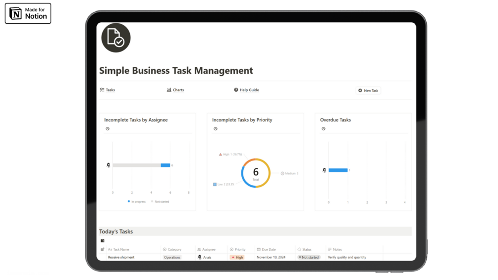 Streamline your business operations with this simple task management template, designed for any type of business.