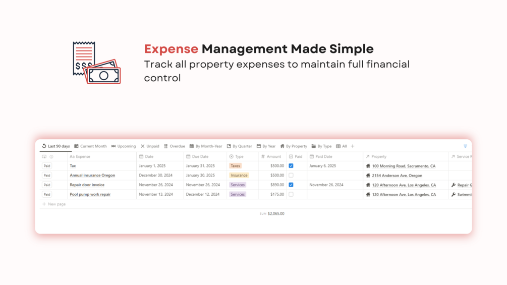 Don't waste any more time and energy managing your rentals in a disorganized manner. Elevate your rental property management experience with the power of the Rental Property Management template. It equips you with all the necessary tools for efficient and stress-free management of your rental properties.