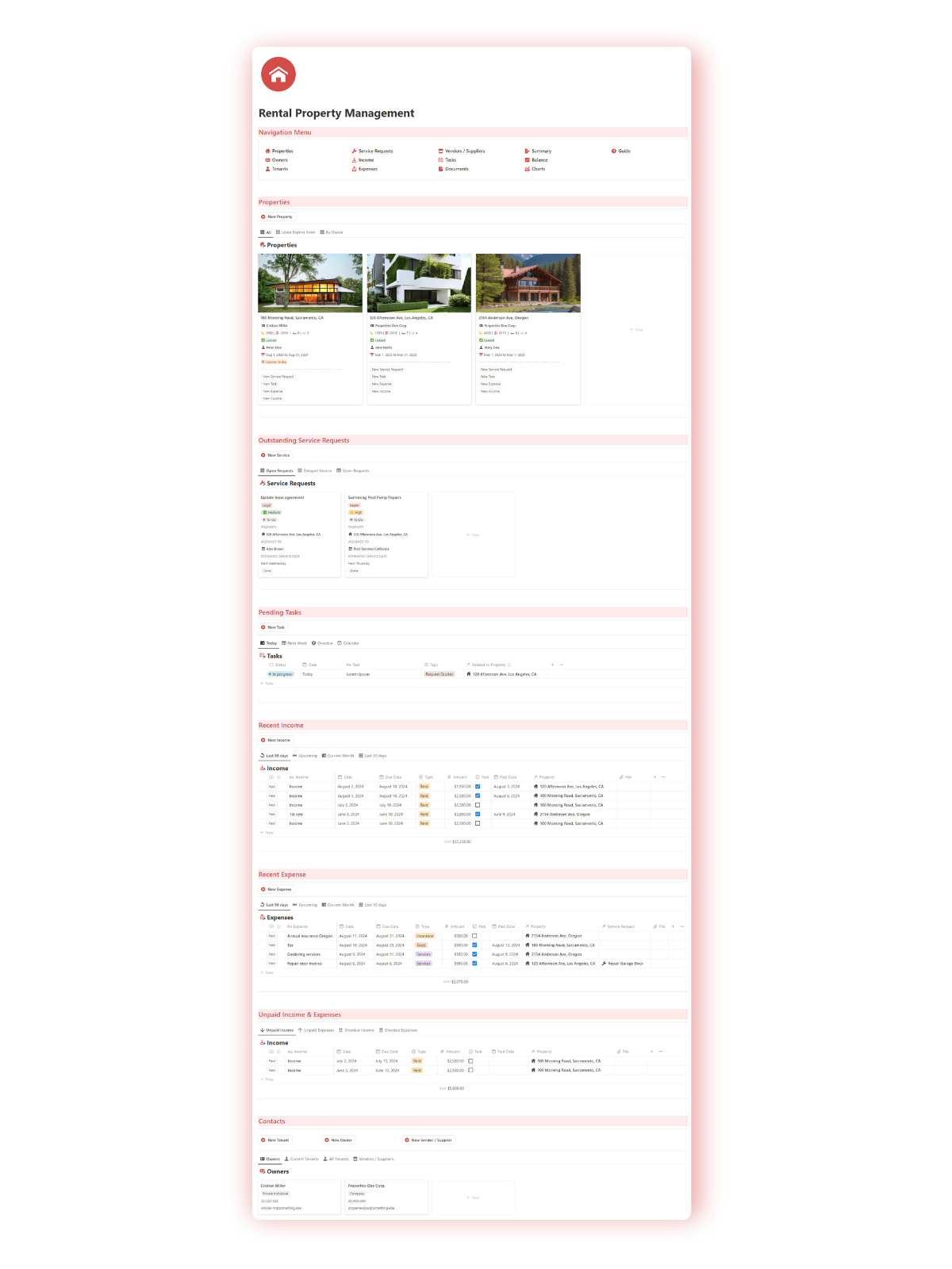 More info on the websiteThis Notion template includes a diverse set of purpose-built databases to address every key aspect of rental management. Here's what you'll find: