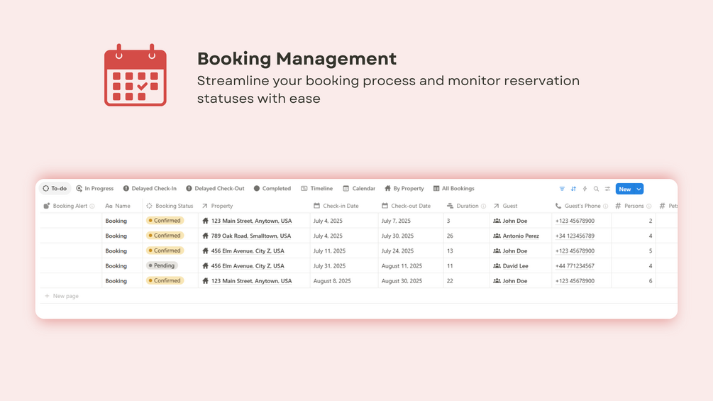 - ๐ก Properties Management: Easily organize property details, bookings, and availability in a central hub.